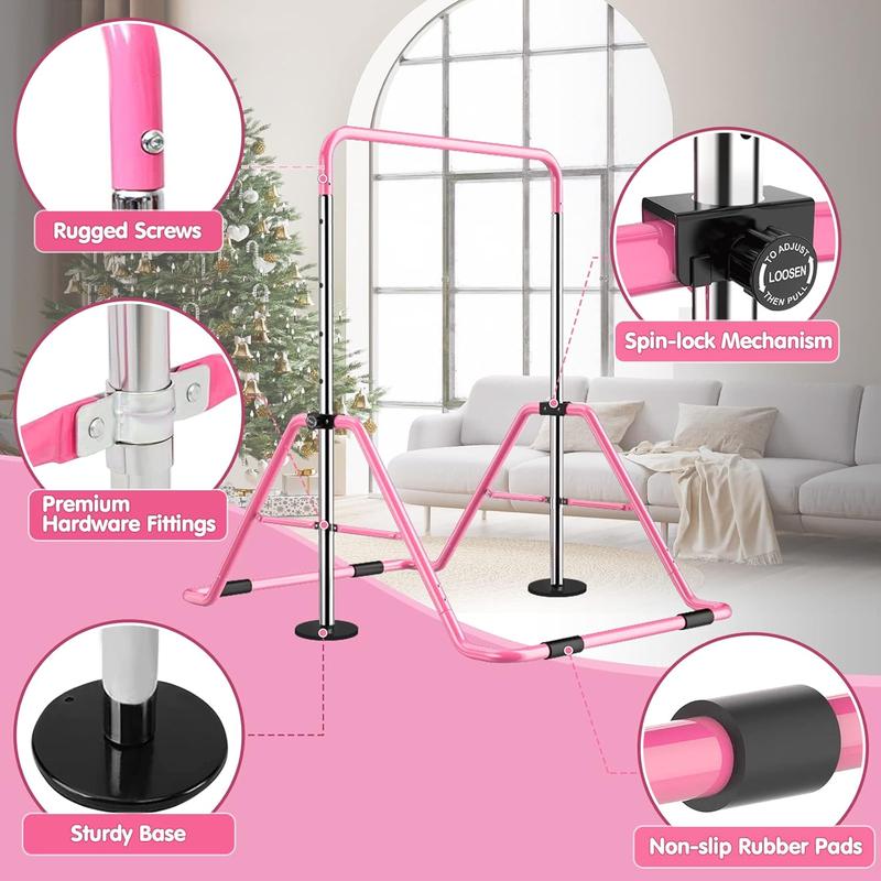 Gymnastics Bars for Kids with Adjustable Height, Folding Gymnastic Training Kip Bar, Junior Expandable Horizontal Monkey Bar for Home