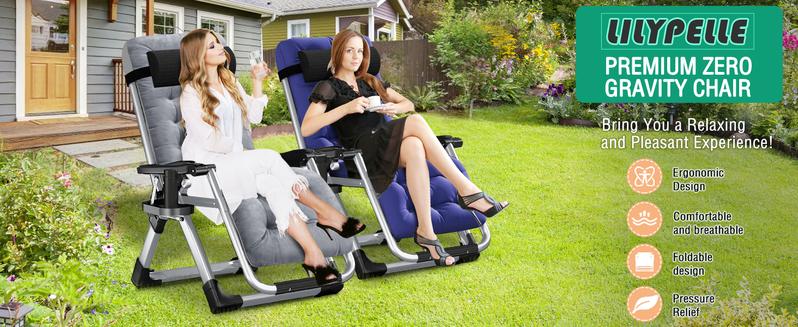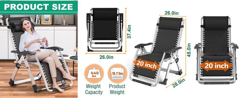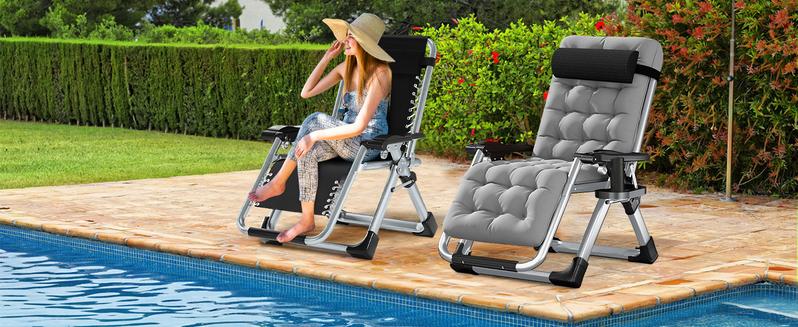 XL Zero Gravity Chair, Oversized XL Folding Reclining Lounge Chair with Removable Cushion & Tray for Indoor and Outdoor, Patio Recliner Folding Reclining Chair